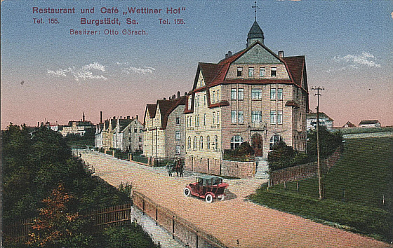 | Biegt man nun von der Schillerstraße kommend nach links auf die Chemnitzer Straße ab, erreicht man in stadtauswärtiger Richtung nach wenigen Schritten das ehemalige Restaurant "Wettiner Hof". Heute befinden sich darin Wohnungen. | ||