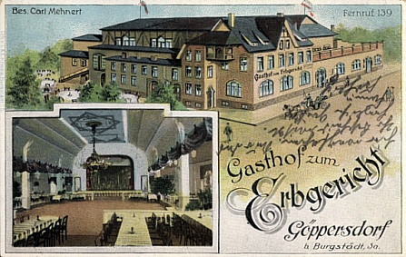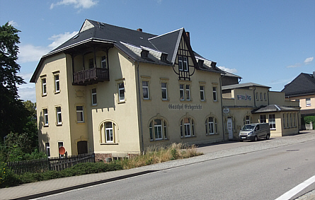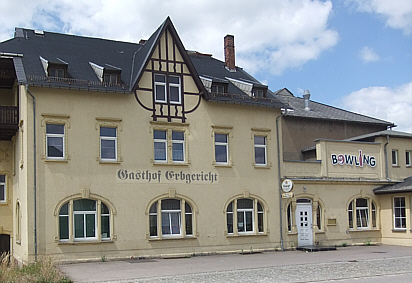 | Wir gehen zurück auf die Chemnitzer Straße. Ca. 200 m weiter stadtauswärts begrüßt uns auf der rechten Seite das Erbgericht. | ||
