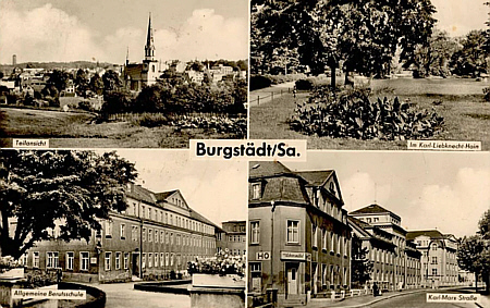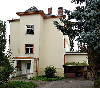 | Unmittelbar nach dem Erbgericht mündet von links die Köbkestraße ein, in die wir zunächst auch einbiegen. Wir laufen ca 600 m und erreichen auf der rechten Seite die ehemalige Gewerbeschule Burgstädt. Nachdem sich zwischenzeitlich eine Musikschule in dem Gebäude befand, dient es heute als Wohnheim für Jugendliche. Nun gehen wir wieder zur Chemnitzer Straße zurück. | ||