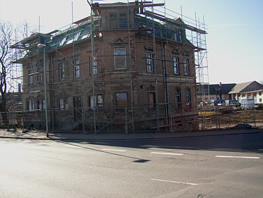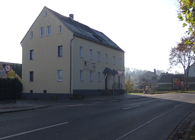 | Schließlich sind wir in Göppersdorf angelangt. Macht die Villa Berger, gelegen an der Einmündung "Zur Bleiche", einen sehr gepflegten Eindruck, ändert sich das Bild beim Gasthaus "Zur Krone". Die Gaststätte ist heute nicht mehr geöffnet, das Gebäude bietet keinen gastlichen Anblick. Und der ehemalige Gasthof "Zur Post" auf der gegenüberliegenden Straßenseite ist nach vielen Jahren des Verfalls 2016 saniert worden. Hier gibt es jetzt türkische Speisen. | ![]() |