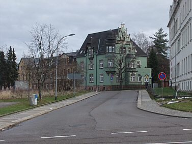 | Hier noch ein Blick von der August-Bebel-Straße in die Dr.-Heinrich-Hahn-Straße hinein. | ||