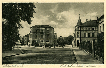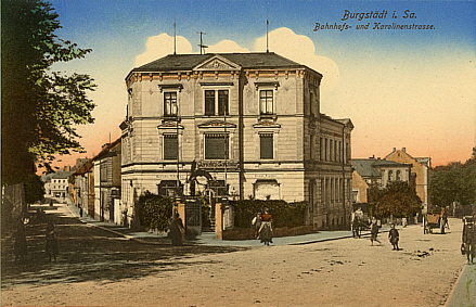 | Ein letzter Blick geht zurück in die ehemalige Bahnhof- und heutige August-Bebel-Straße. Wir haben den Postplatz, der heute Ahnathaler Platz heißt, erreicht. | ||