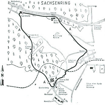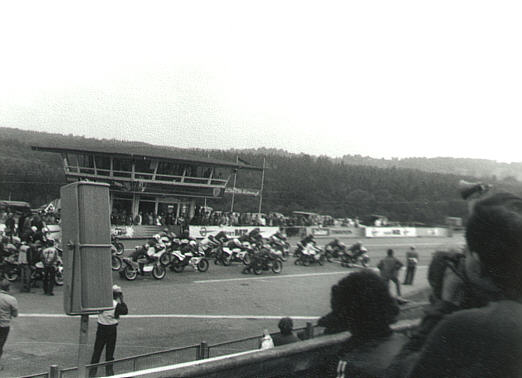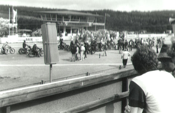 | 1986 nahm der Autor als Zuschauer auf der großen Start- und Zieltribüne am Sachsenringrennen teil. Es wurden sowohl Motorrad- wie auch Automobilrennen gefahren |